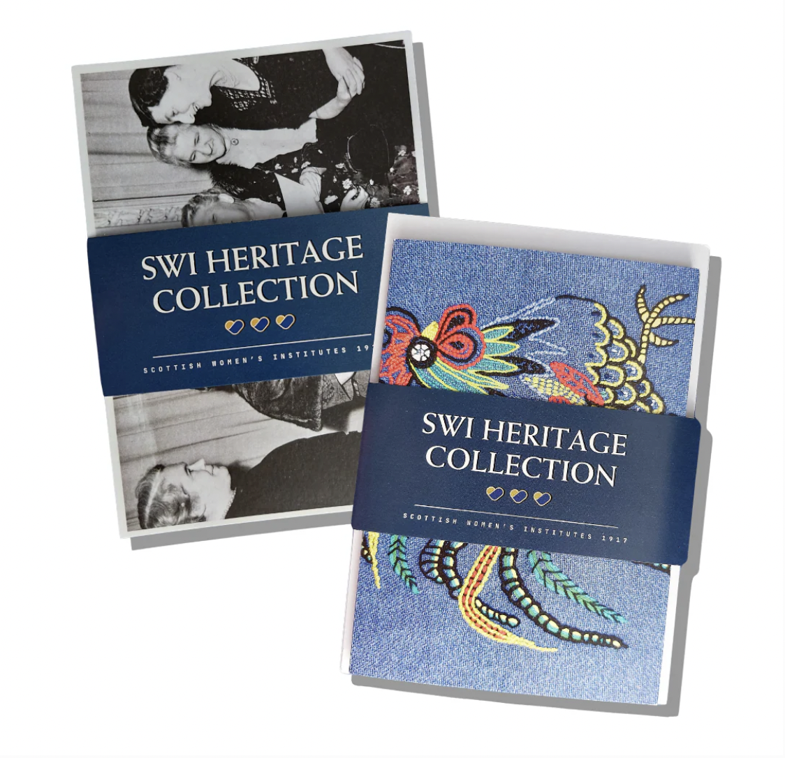 5 greeting cards (A6) Each card features traditional Scottish crafts –embroidery, knitting, and historical textiles.10 postcards (A6) A nostalgic set of black-and-white images of SWI members from days gone by, capturing friendship and community.